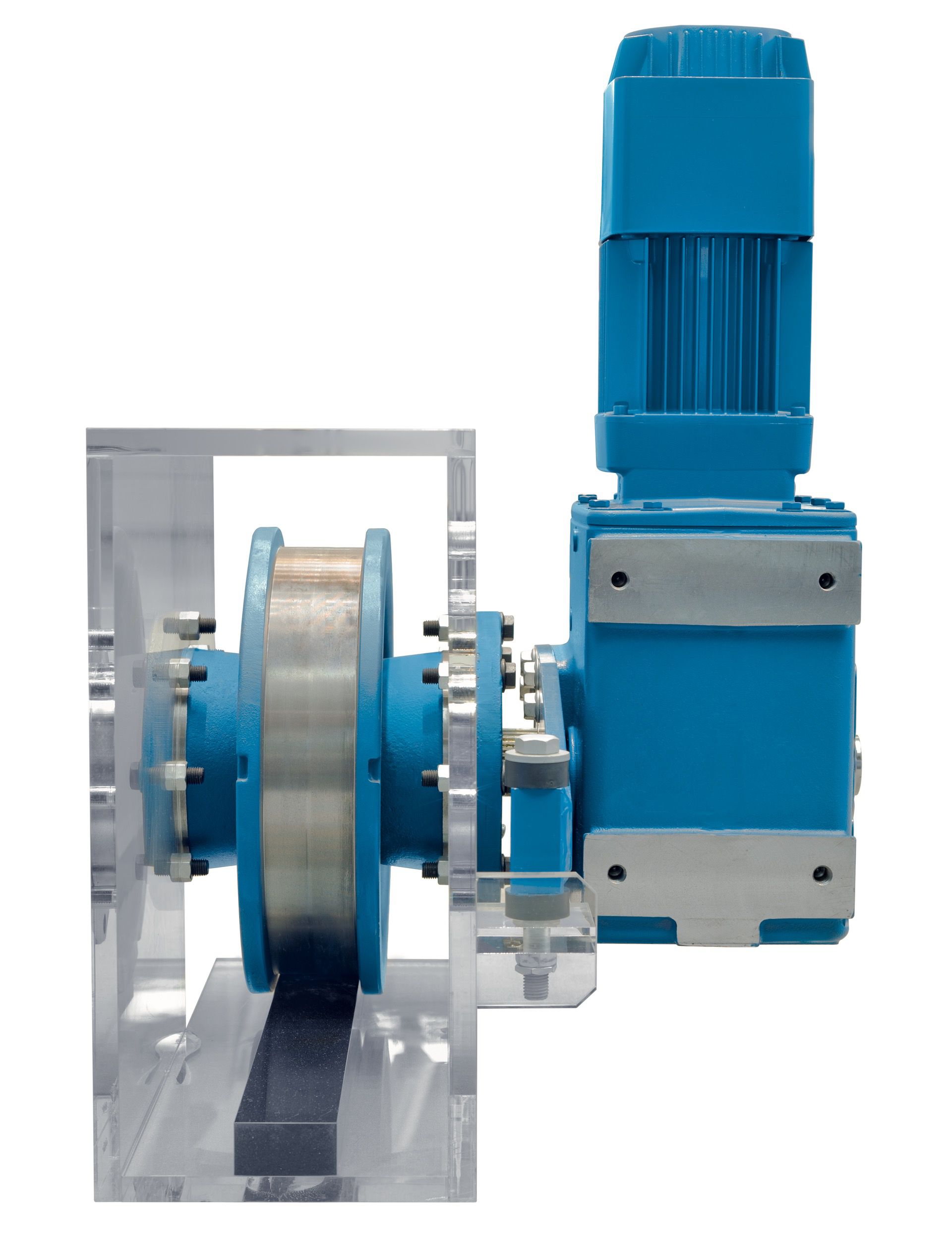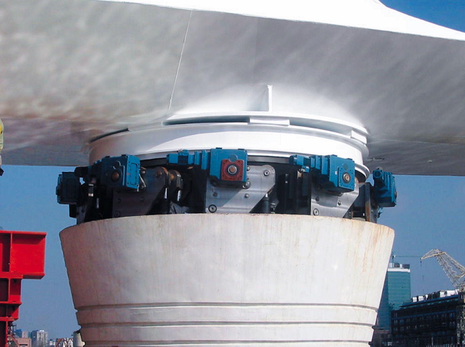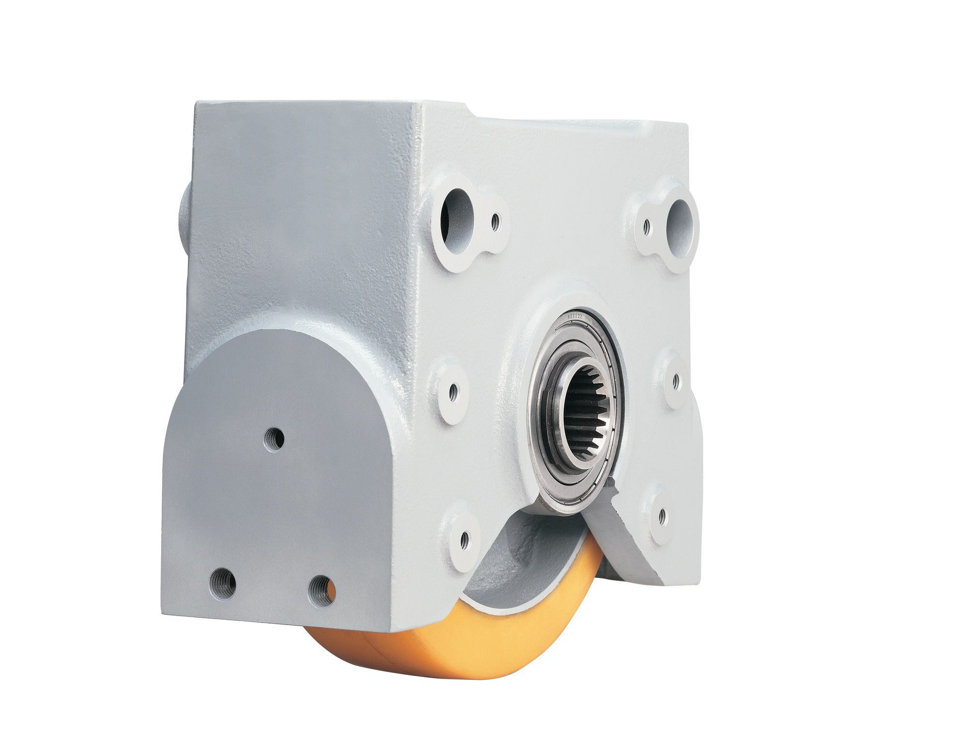 Nuestro conjunto de ruedas DWS asume las funciones de transporte sobre carriles incluso en rangos de cargas elevadas hasta 60 Tn. Con este conjunto creamos unidades de traslación completas en versiones traccionadas y sin traccionar. Para ello, empleamos nuestros motorreductores planos o angulares del sistema modular de accionamientos. El uso de estos componentes de la serie DWS ofrece una gran seguridad en el funcionamiento y garantiza facilidad en los cambios de ruedas. Por su aprovechamiento universal, el juego de ruedas DWS se utiliza no sólo en el ámbito de las grúas y del transporte, sino también en la construcción de maquinaria.
