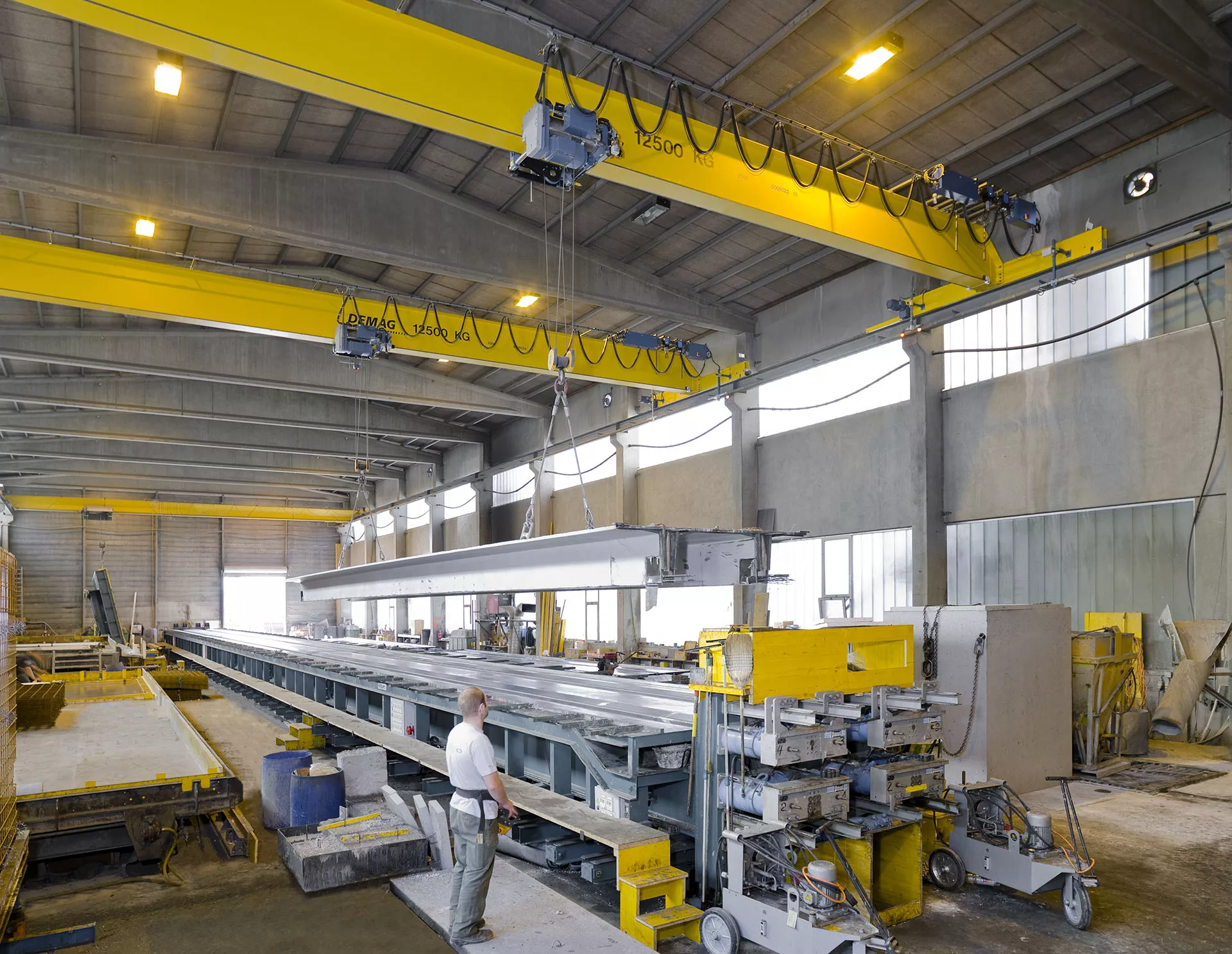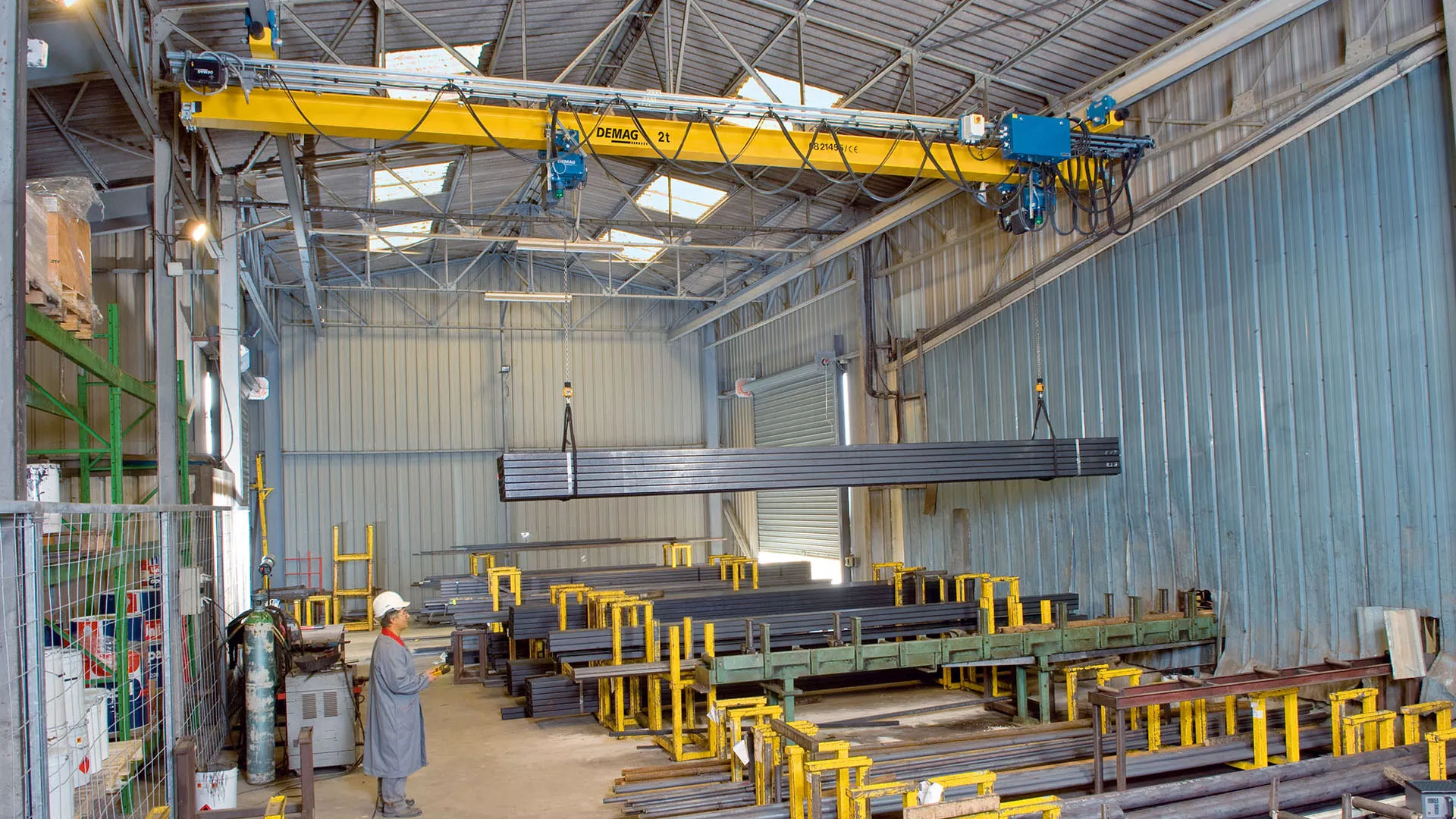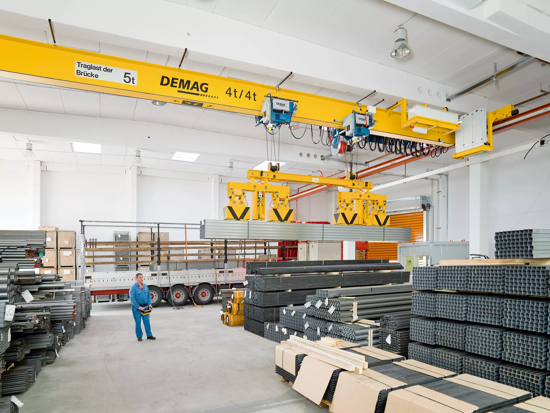 La mejor solución para los requisitos de manipulación de materiales se encuentra habitualmente, en una combinación de varios productos de Demag, como por ejemplo en la operación combinada de grúas universales Demag con grúas pluma.