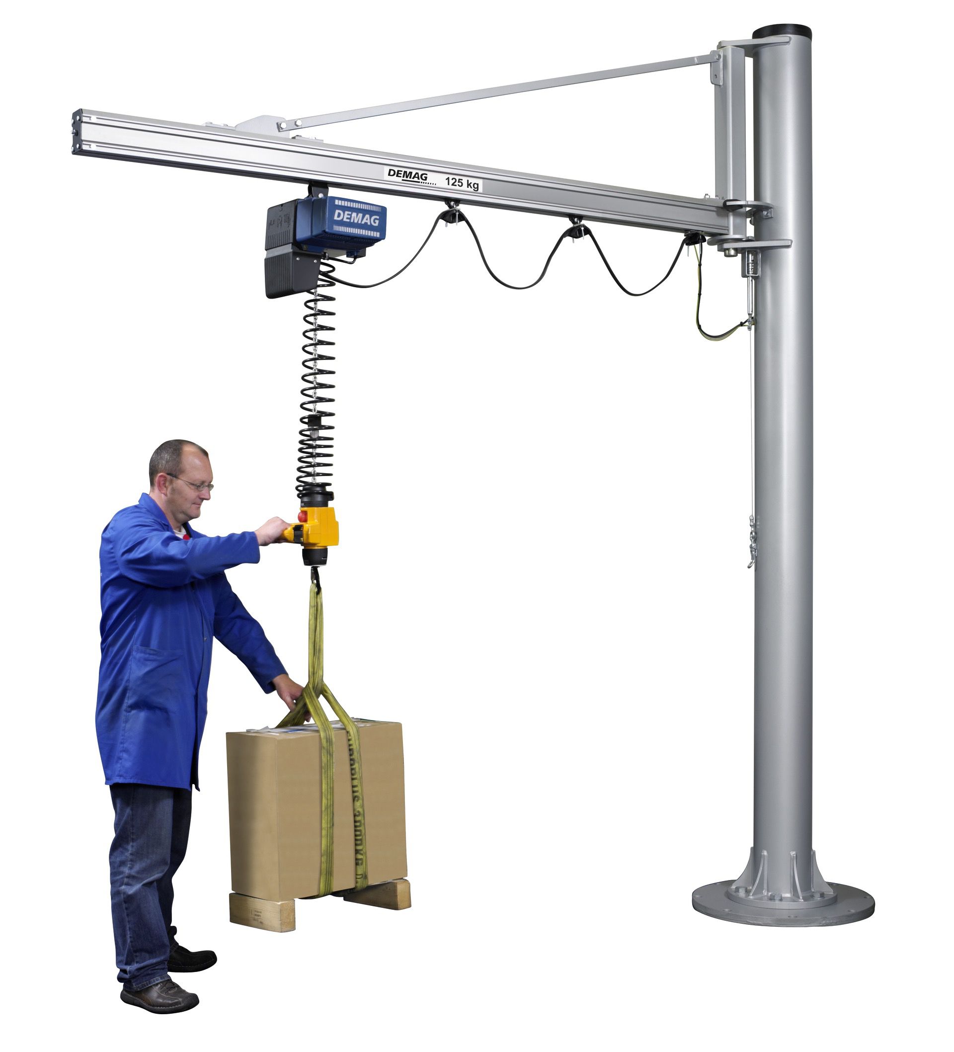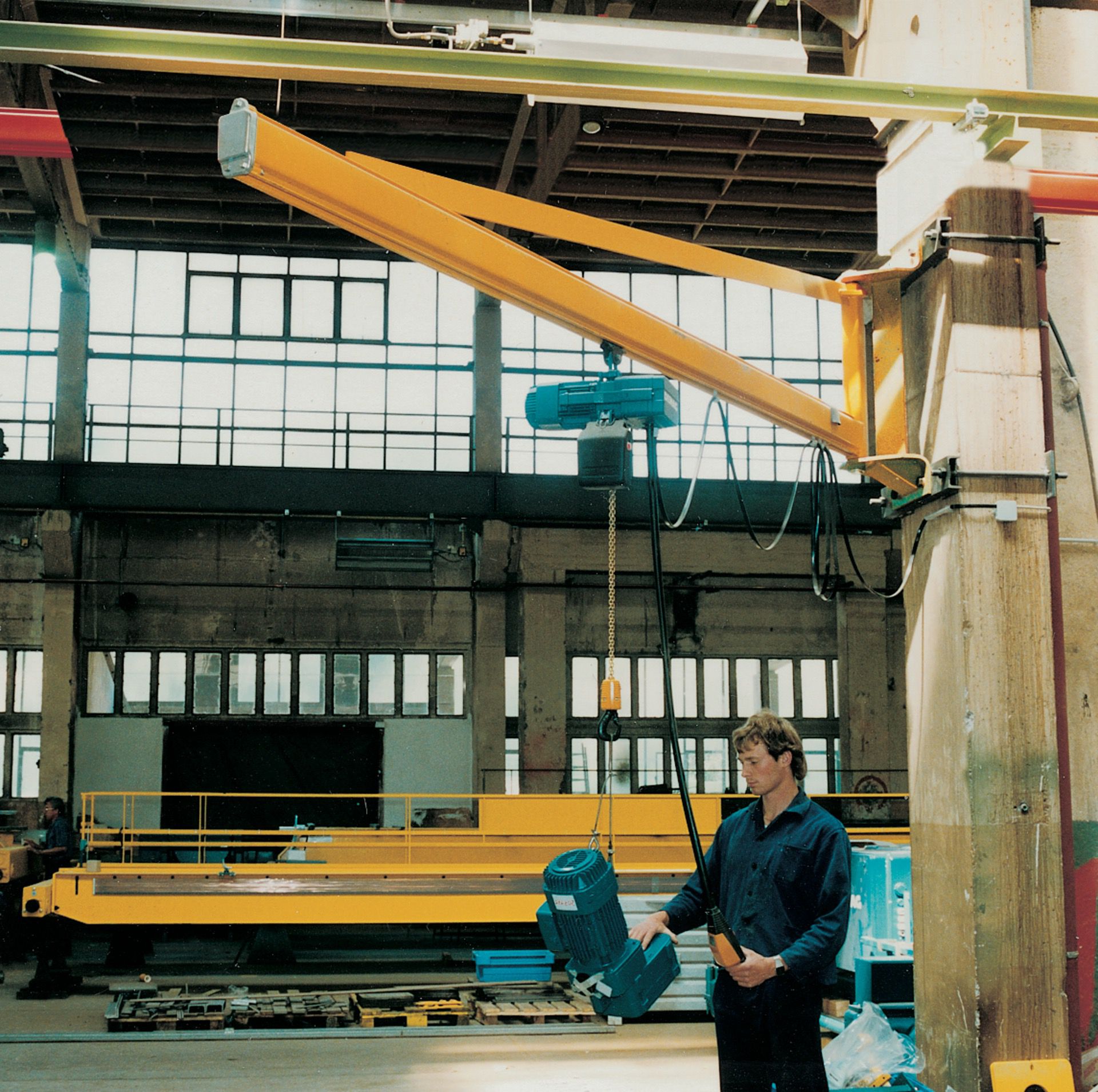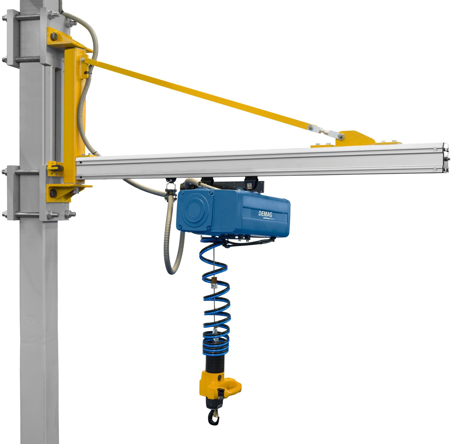 Especialmente, el transporte manual, la interconexión, o el traslado de cargas pequeñas, suelen llevar mucho tiempo, además de suponer un esfuerzo, desde el punto de vista ergonómico para el operario. Los pescantes giratorios murales y de columna Demag contribuyen en gran medida a optimizar la ergonomía de los puestos de trabajo. Le ofrecemos soluciones para la realización precisa de sus requerimientos específicos. Siempre con la máxima fiabilidad para operadores, instalaciones y cargas.